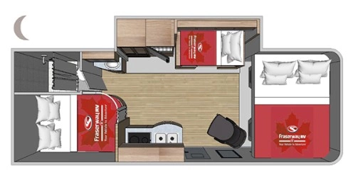 Bei Fraserway gibt es den Truck Camper auch mit Slide Out in zwei Varianten, mit Bunk Bett oder Sitzgruppe.