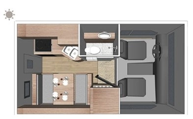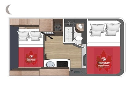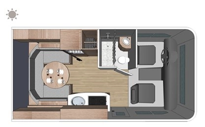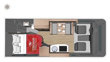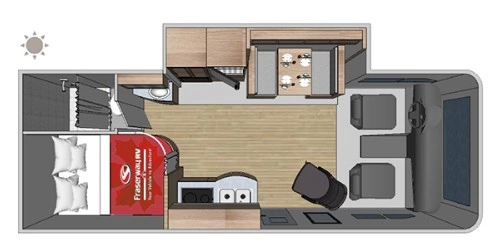 Grundriss-Beispiel 24ft Wohnmobil. Diese haben in der Regel keinen Slide Out. Sind dafür im Preis etwas günstiger.